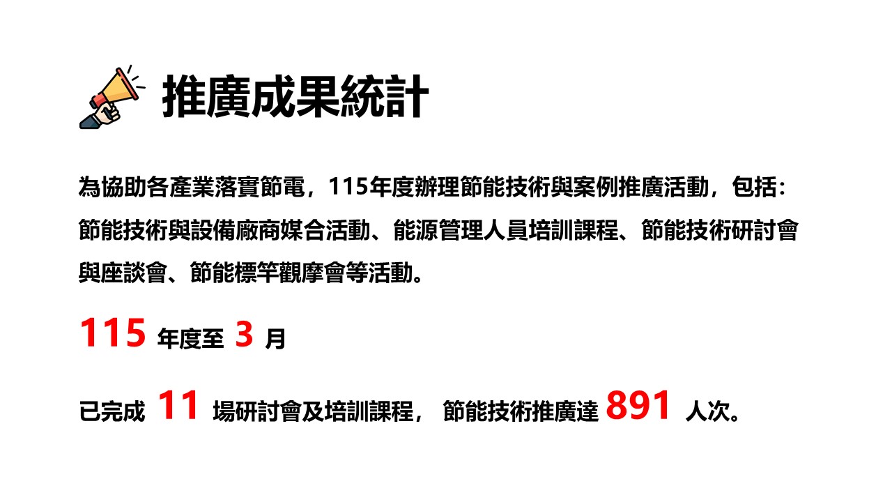 | 115年度生產性質能源大用戶節約能源查核制度申報說明會-台中場 | 115年度生產性質能源大用戶節約能源查核制度申報說明會-線上 |