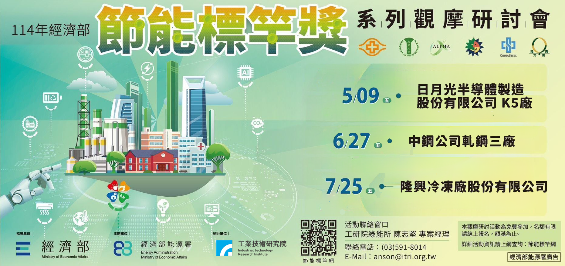 表揚節能標竿廠商、公民營機構與推動能源教育標竿學校,推動節能工程或相關措施,以協助產業界降低能源成本。